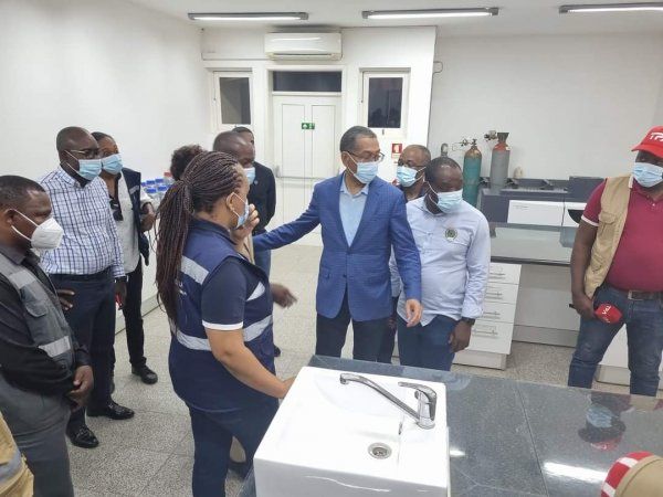 Em companhia da Ministra do Ambiente, Paula Carvalho, e da Governadora Mara Quiosa, o Ministro Diamantino Azevedo recebeu informações sobre o Centro que se tem dedicado à análise físico-química da água, embora tenha entre objectivos aferir também a poluição do ar e do solo.